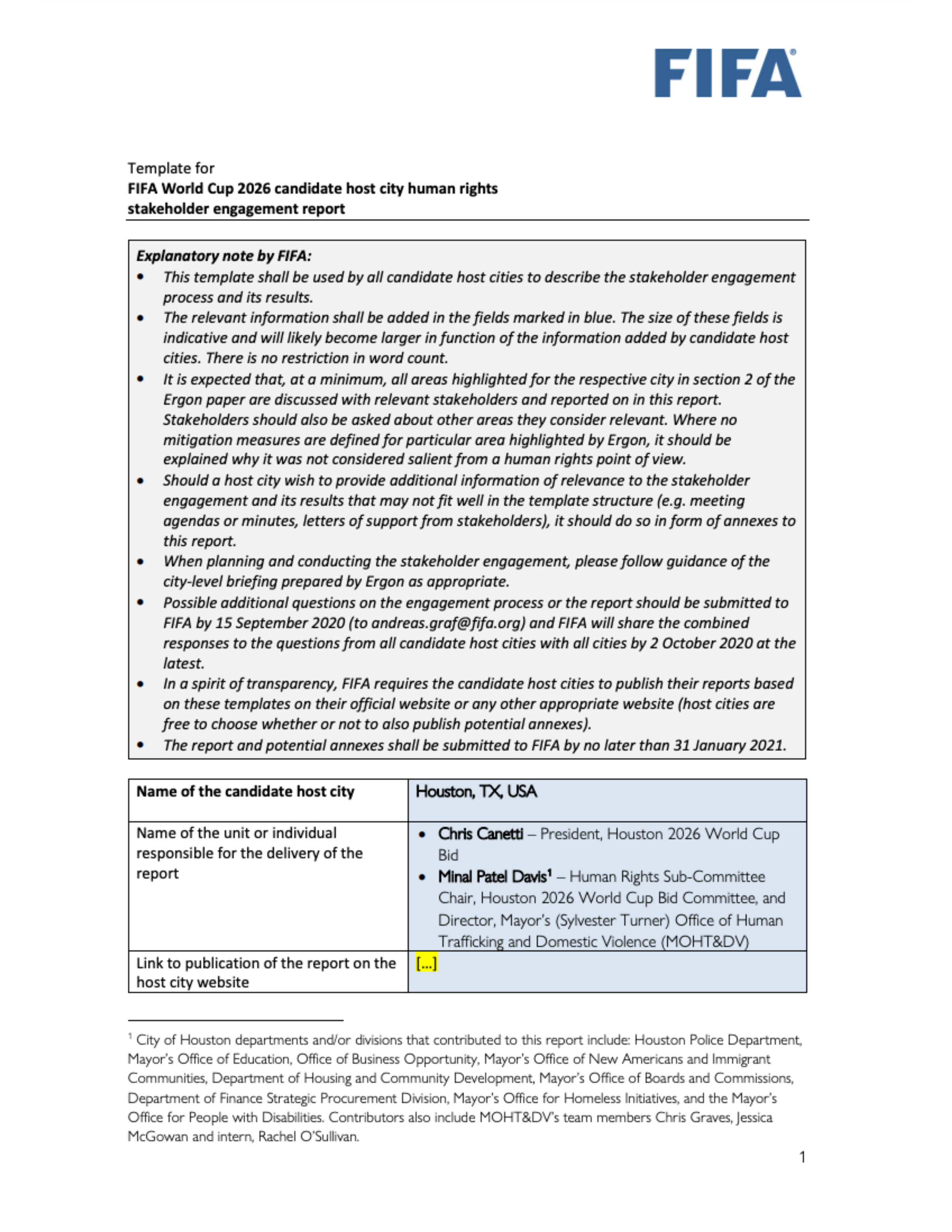 Actualized the United Nations Guiding Principles on Business and Human Rights and the FIFA World Cup 2026 Human Rights Framework to the local context for a host city organizing committee.